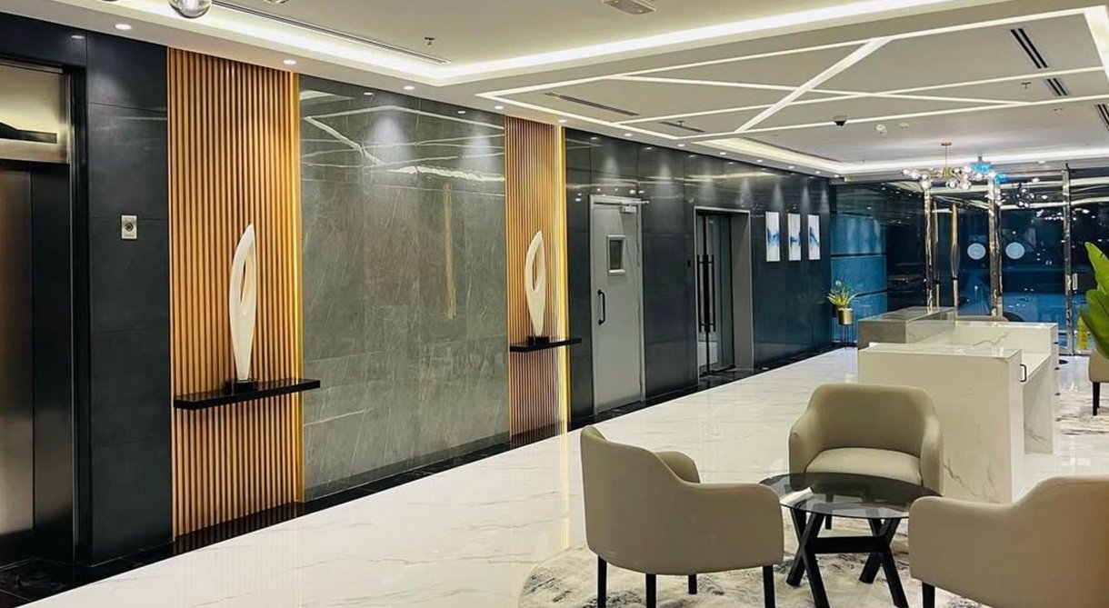 Location: Dubai – Muhaisnah Tower Scope: Full Lobby Renovation | Client: Confidential