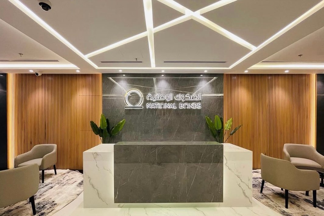 A complete transformation of a residential lobby for National Bonds, merging modern geometry