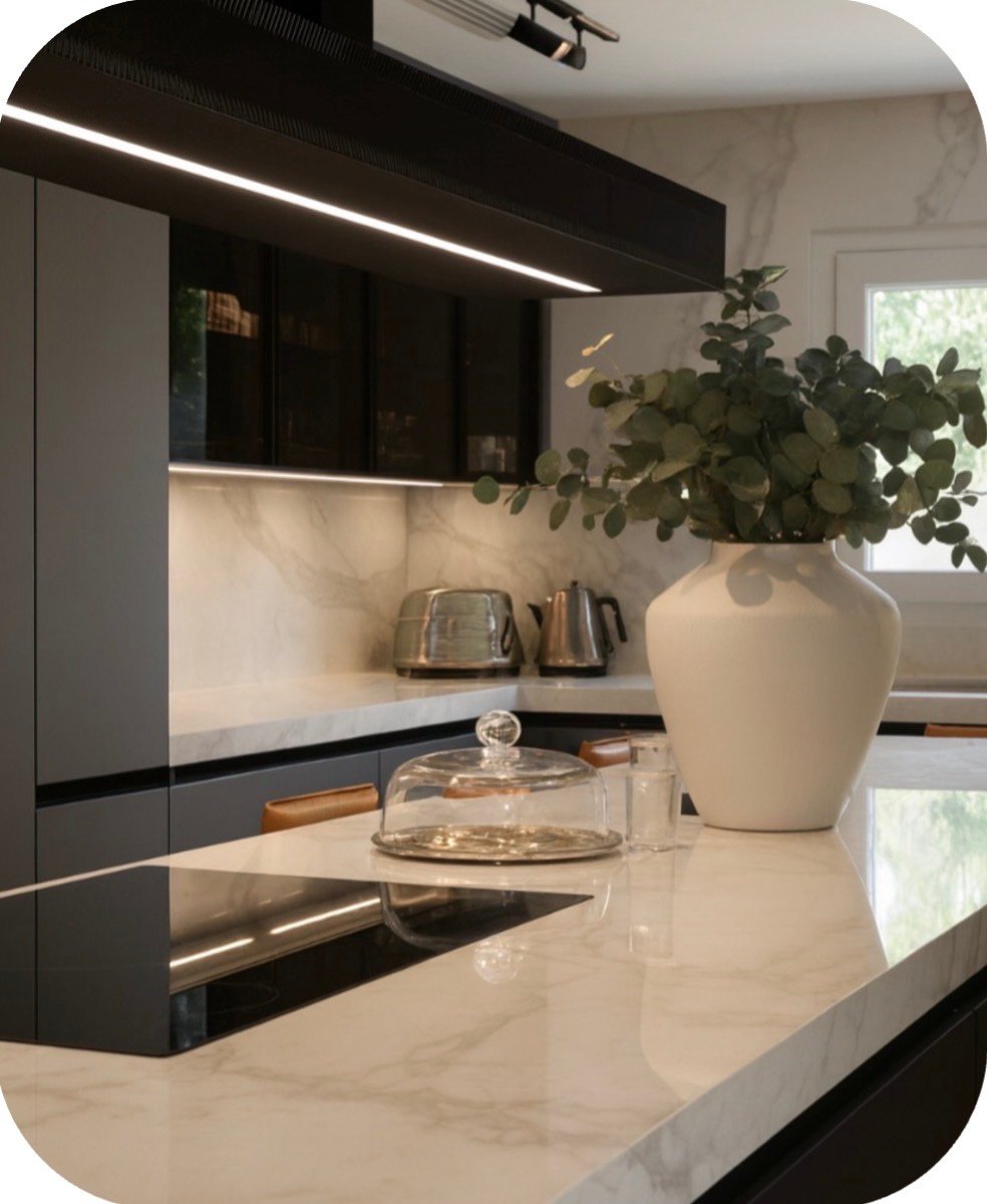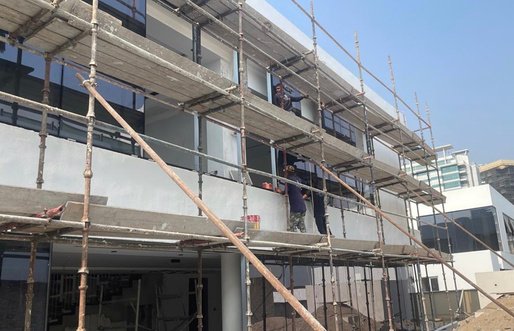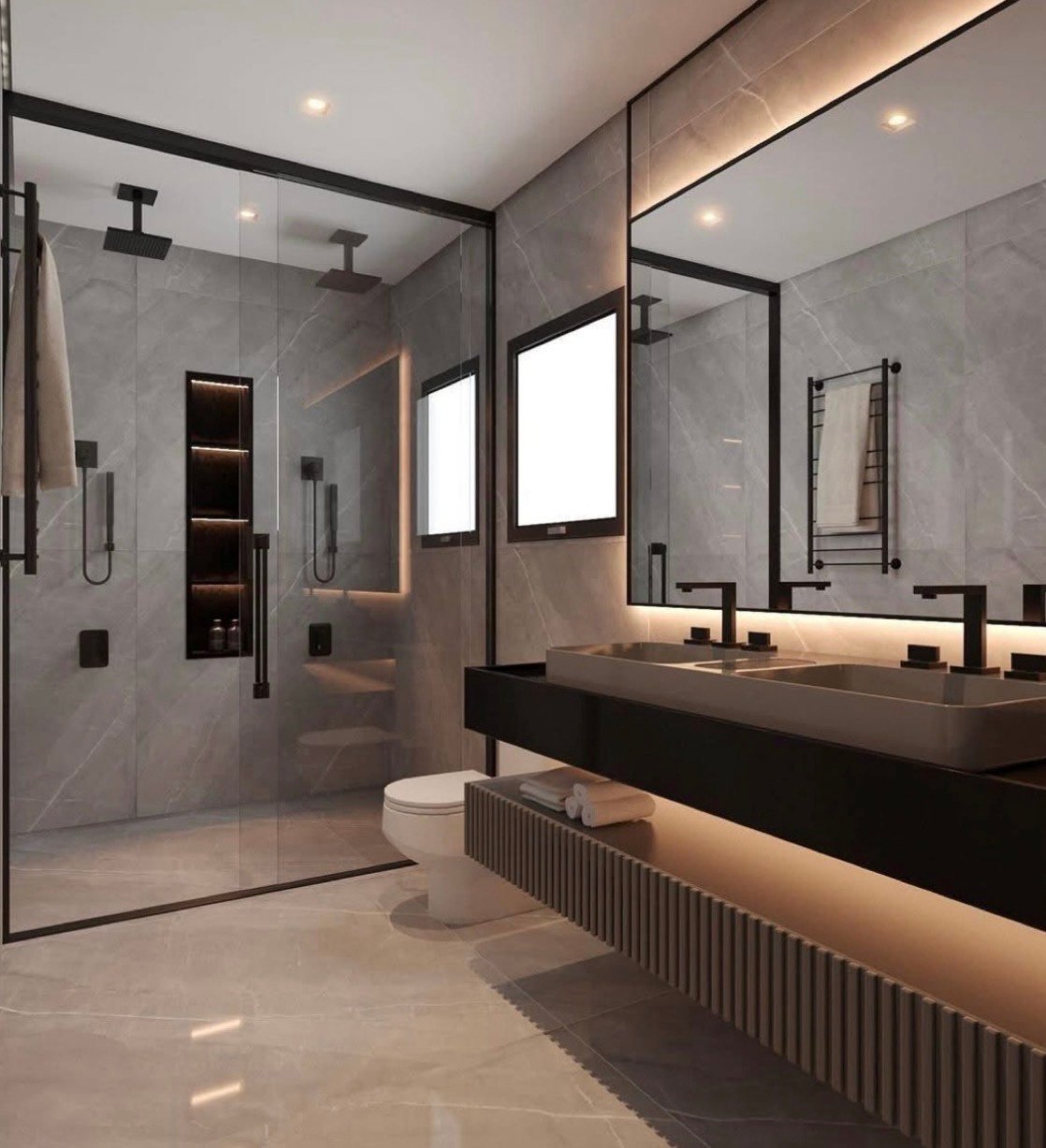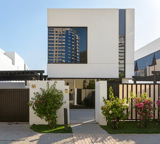 It was a full villa renovation project, where we completely removed all previous materials and replaced them with new finishes and modern elements. The exterior design was entirely reimagined by breaking the old windows and installing large black-framed openings to bring in more natural light and create a contemporary architectural look.