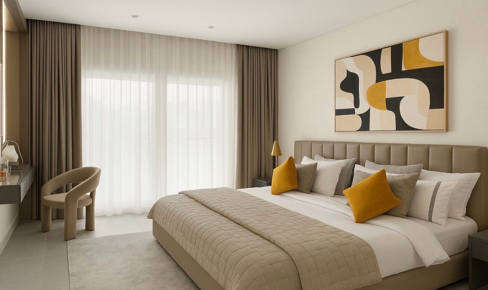 Additionally, the ground floor layout was expanded to achieve a more open and spacious flow. A new guest bedroomwas also added on the first floor, positioned beautifully beside the pool area to enhance comfort and functionality for visitors.